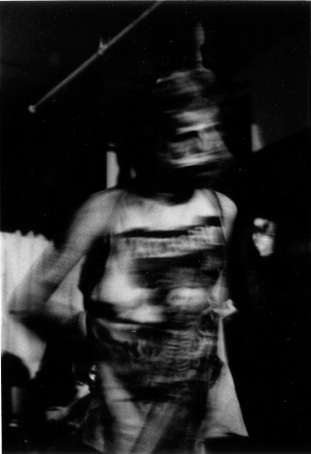 Our freak-a-zoid MOTODADA show, partly a creation of NYC artist Erika Yeomans. It was our only real “art-show” gig. I did myself up in modified mummy attire and my WATCH & PRAY t-shirt. Drummer Dave Dickey had broken his ankle, so brilliant Doldrums vocalist and musical polymath Pete Brightman sat in with us for the show. The Psychic Violents song “Pete’s Theme” came from this collaboration.